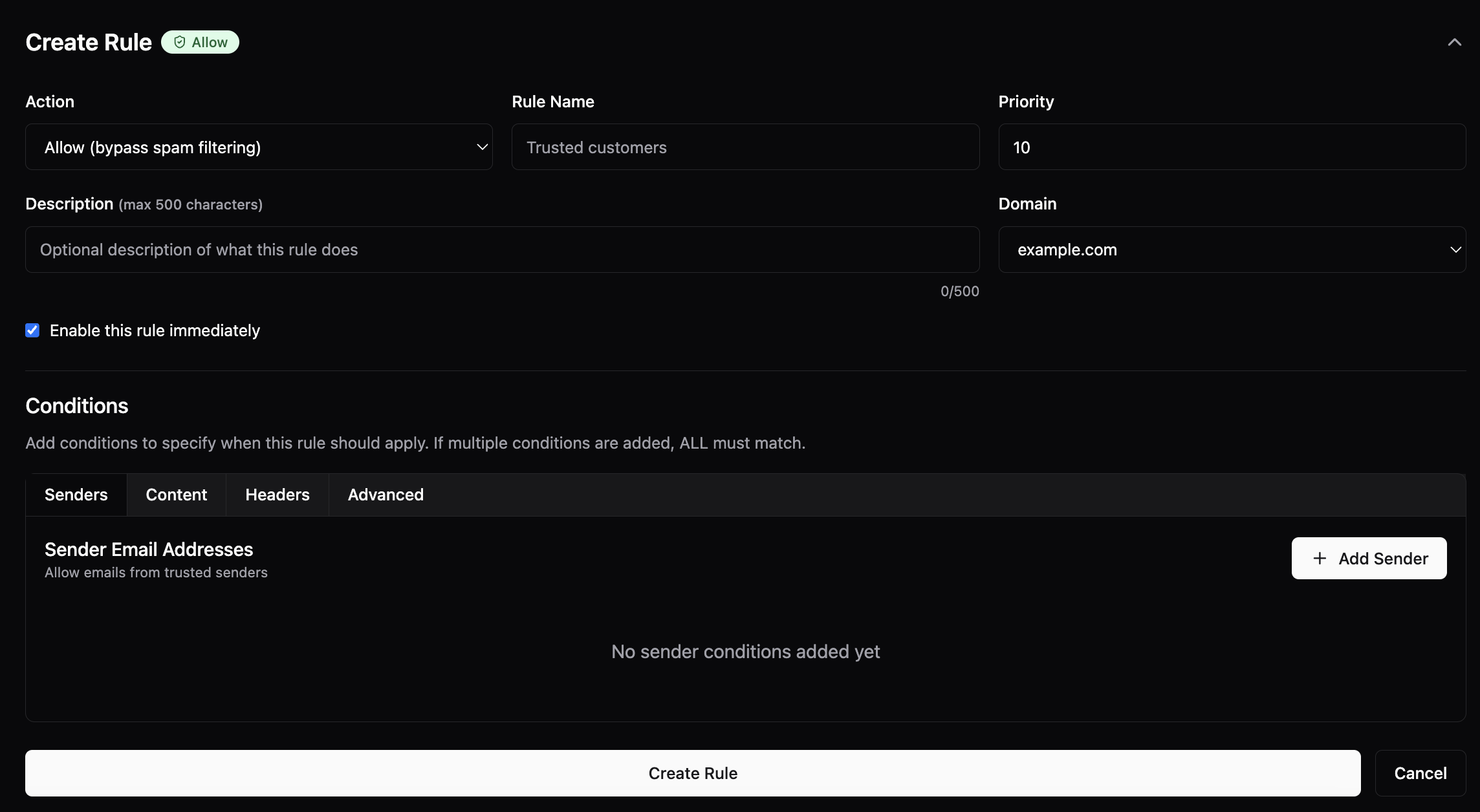 - Set a Description (optional): Set a description to help identify the rule later on. This is not a required field.