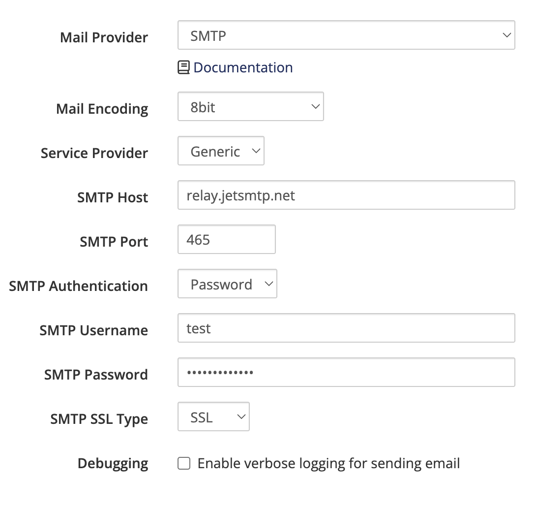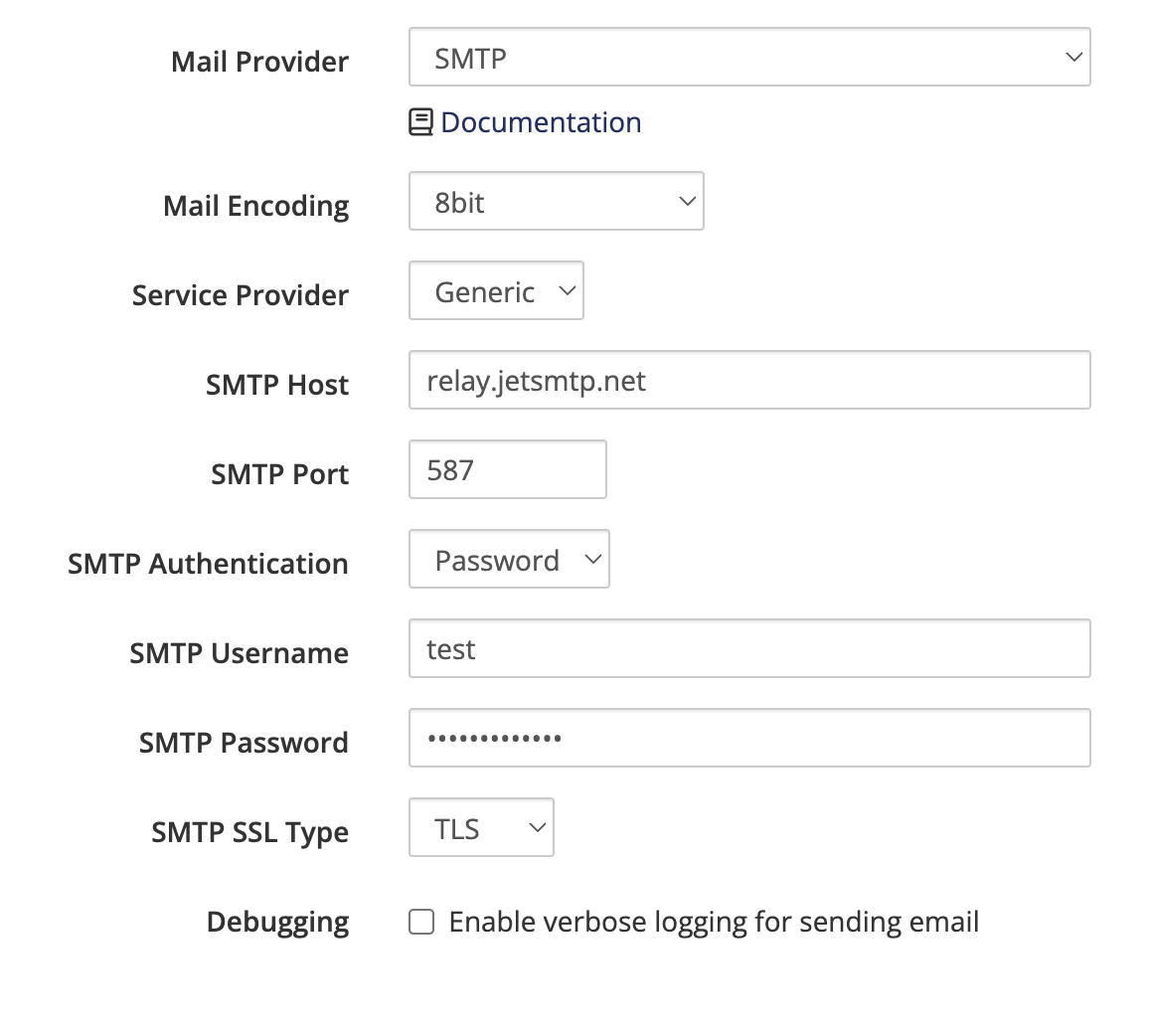 - SMTP Password: Your JetEmail SMTP password